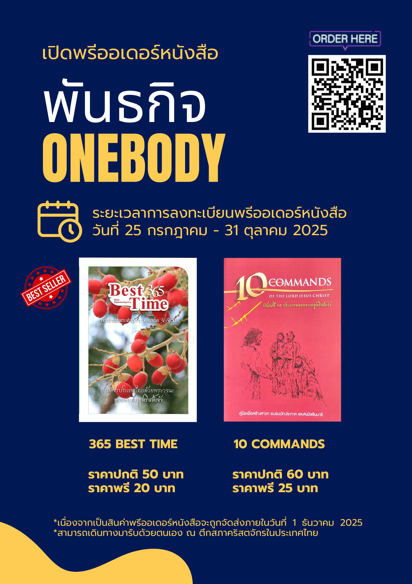 ในช่วงพรีออเดอร์ หนังสือจำหน่ายในราคาพิเศษเล่มละ 20 บาท จากราคาปกติ 50 บาท ค่าจัดส่ง 100 บาทต่อครั้ง และ 200 บาทสำหรับการสั่ง 100 เล่มขึ้นไป หรือสามารถรับด้วยตนเองที่สำนักงาน ONEBODY ณ สำนักกลางนักเรียนคริสเตียน อาคารสภาคริสตจักรในประเทศไทย