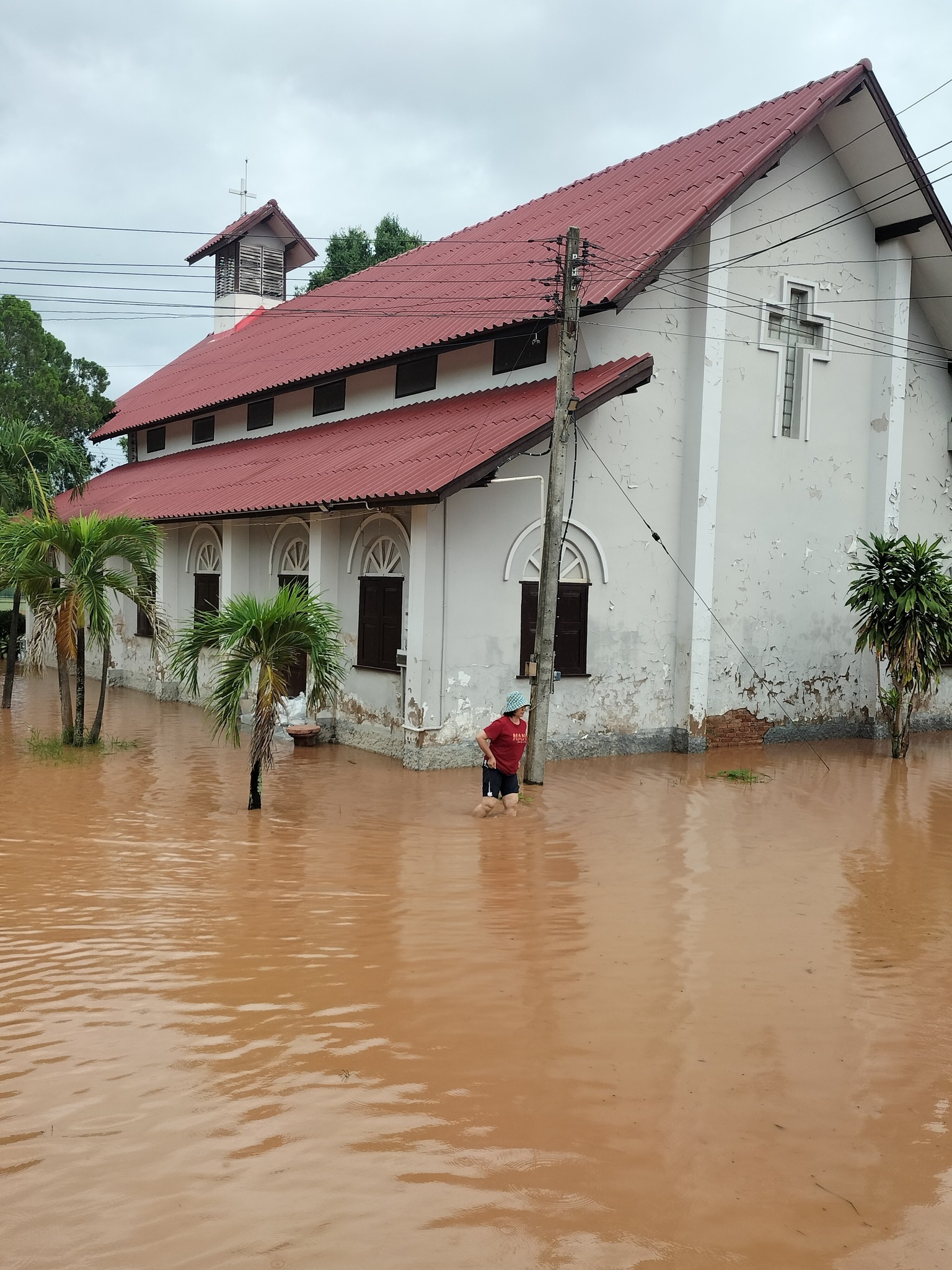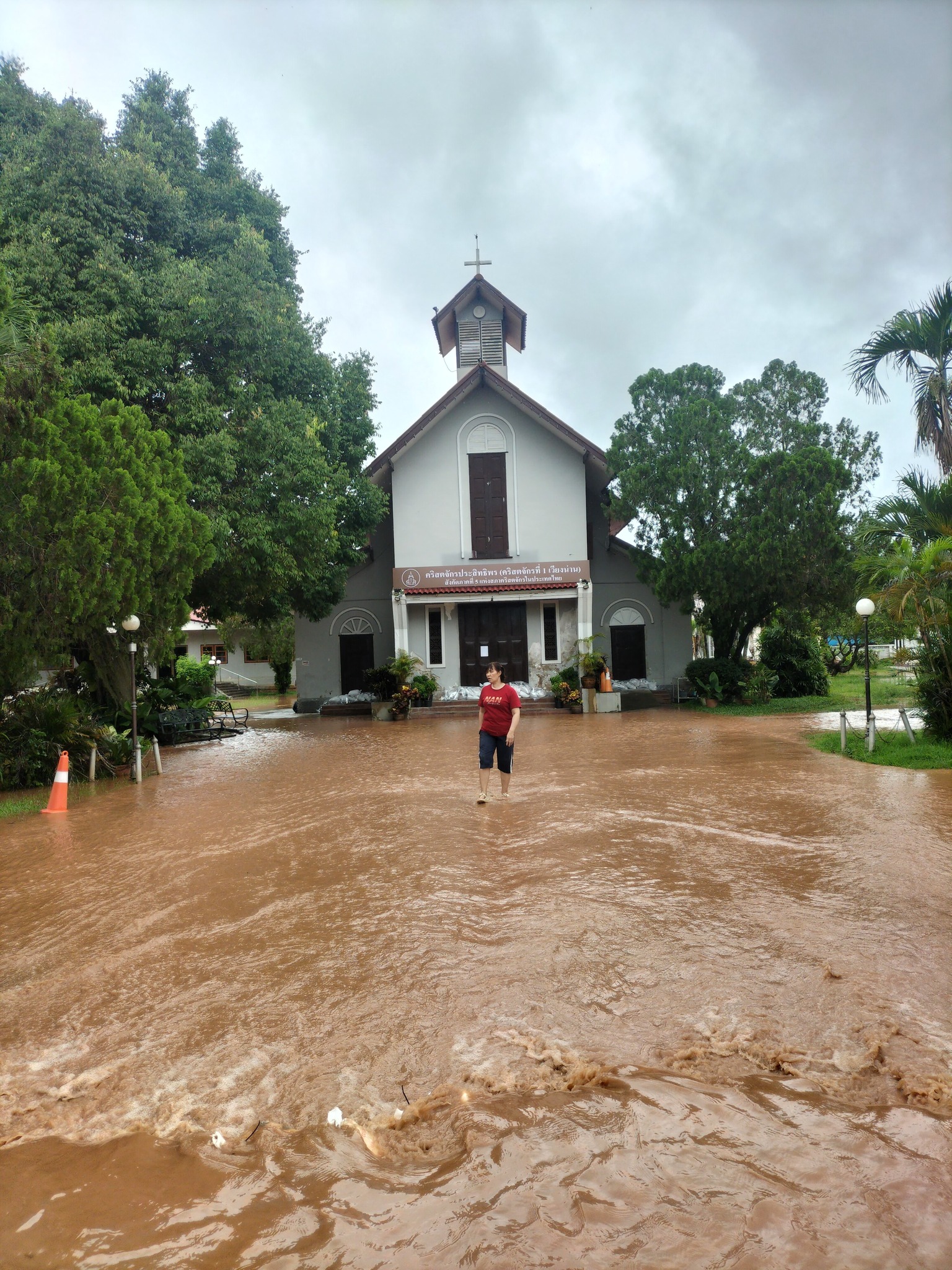 ศจ.ธีระกิจ ระบุว่า เมื่อเทียบกับรูปที่ถ่ายไว้เมื่อบ่ายวันที่ 24 ก.ค. ซึ่งระดับน้ำสูงประมาณ 50 ซม. โดยระดับน้ำในช่วงเช้าวันที่ 24 สูงกว่าเดิมมาก ถนนด้านหน้าคริสตจักร (ถ.รังสีเกษม) และบริเวณใกล้เคียงก็มีน้ำท่วมสูงขึ้นเรื่อยๆ