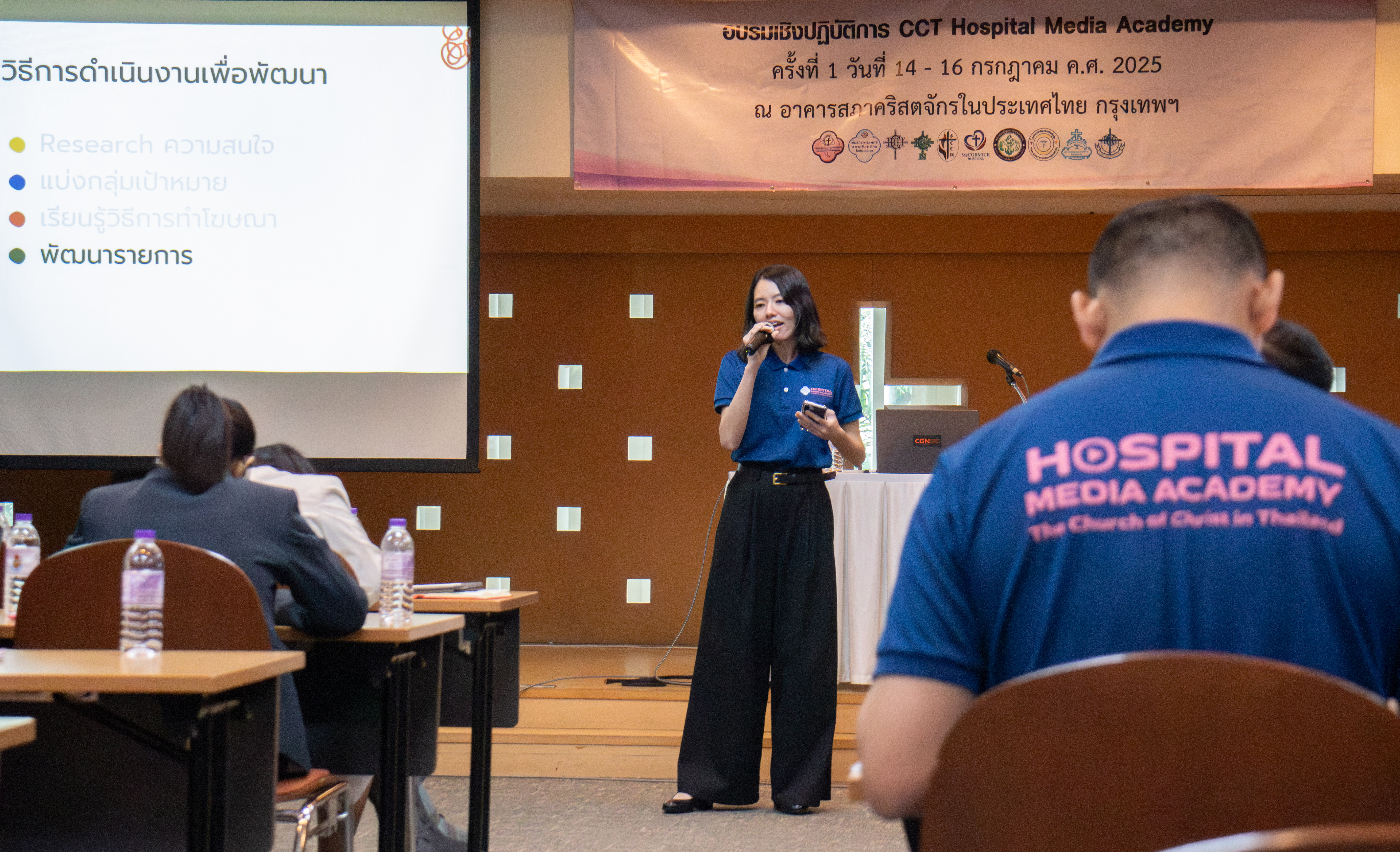 ระหว่างวันที่ 14–16 กรกฎาคม 2025 ณ ห้องประชุมชั้น 4 อาคารสภาคริสตจักรในประเทศไทย กรุงเทพฯ มีการจัดอบรมสัมมนาเชิงปฏิบัติการ CCT Hospital Media Academy ครั้งที่ 1 ซึ่งเป็นการอบรมการผลิตสื่อให้แก่เจ้าหน้าที่โรงพยาบาลในสังกัดมูลนิธิแห่งสภาคริสตจักรแห่งประเทศไทย