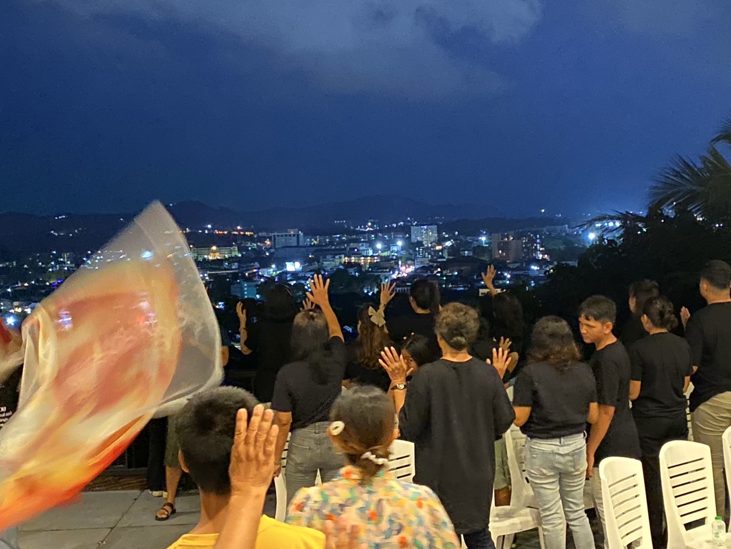 ในค่ำคืนสุดท้ายของวันเสาร์ ผู้เข้าร่วมได้ขึ้นไปยังจุดชมวิวเขารัง เพื่อร่วมกันอธิษฐานเผื่อเมืองภูเก็ต ท่ามกลางทัศนียภาพของเมืองที่ทอดยาวใต้ฟ้า คำอธิษฐานจากผู้นำและพี่น้องคริสเตียน ที่เป็นการร้องทูลขอพระพรปกคลุมเมือง การอวยพรผู้นำ และการทูลขอการฟื้นฟูในจังหวัดนี้
