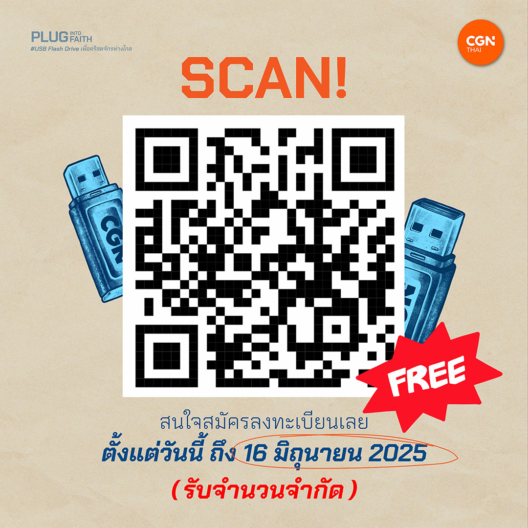 สำหรับคริสตจักรที่สนใจ สามารถลงทะเบียนขอรับยูเอสบีแฟลชไดร์ฟได้ตั้งแต่วันนี้ถึงวันที่ 16 มิถุนายน 2025 โดยทีมงานจะคัดเลือกจากข้อมูลการลงทะเบียนและจะติดต่อแจ้งผลภายในวันที่ 30 มิถุนายน 2025 ทางโทรศัพท์