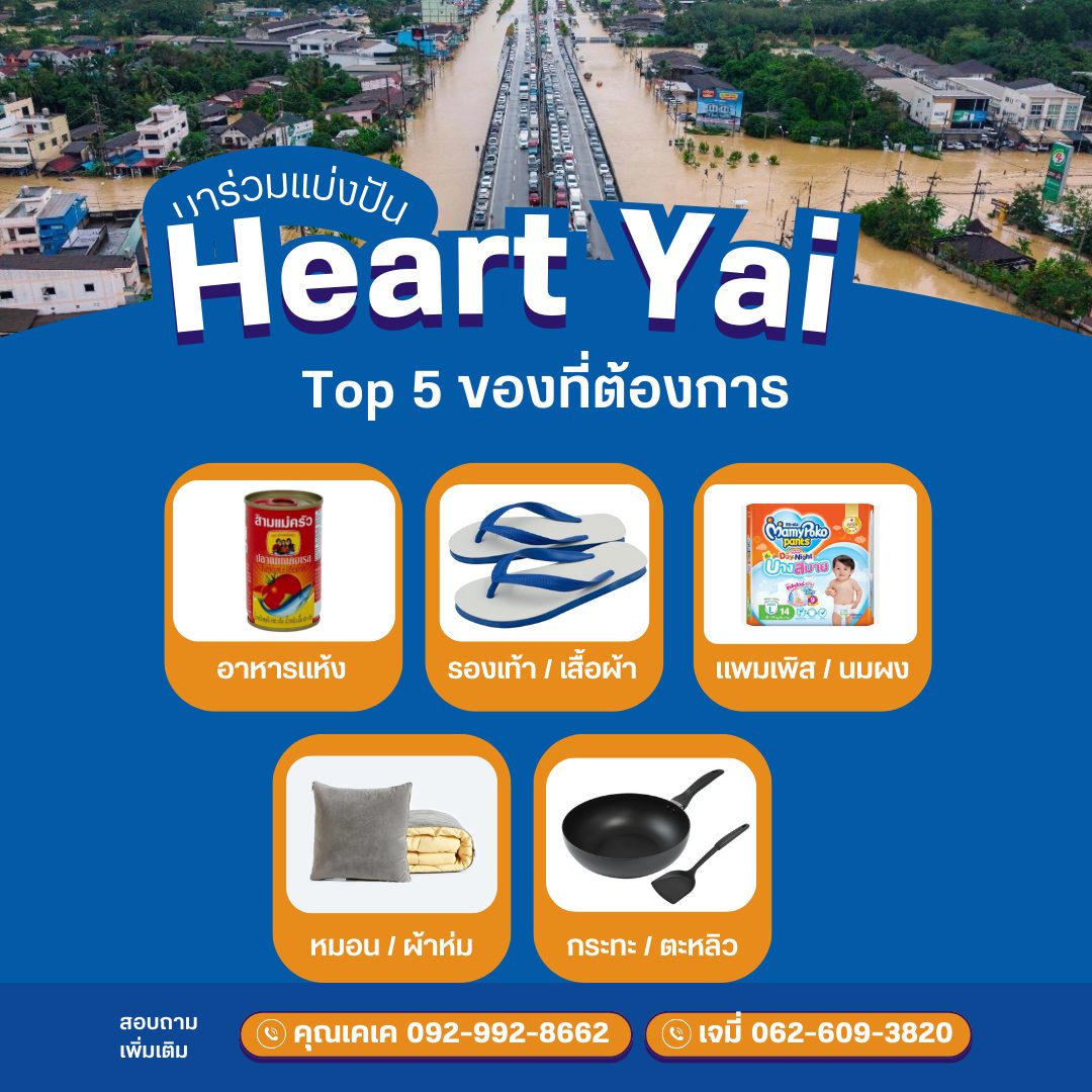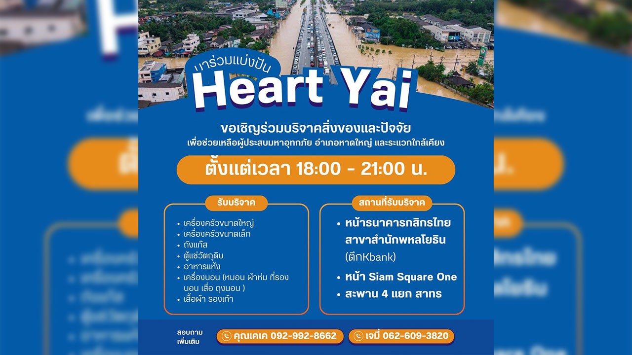 ท่ามกลางวิกฤตน้ำท่วมหนักในอำเภอหาดใหญ่ จังหวัดสงขลา และอีกหลายจังหวัดในภาคใต้ กลุ่มอาสาสมัครกลุ่มหนึ่งที่เป็นคริสเตียน ได้ผนึกกำลังเปิดโครงการ "Heart Yai" เพื่อระดมสิ่งของจำเป็นและส่งมอบความช่วยเหลือแบบมีระบบ ตั้งแต่การรับบริจาค การจัดการข้อมูล ไปจนถึงการวางแผนโลจิสติกส์การบิน เพื่อให้ความช่วยเหลือเข้าถึงผู้ประสบภัยอย่างรวดเร็วที่สุด โดยมีหัวใจสำคัญคือ "ช่วยอย่างตรงจุด" ผ่านข้อมูลเรียลไทม์และการประสานงานที่เป็นหนึ่งเดียวกันในพระคริสต์